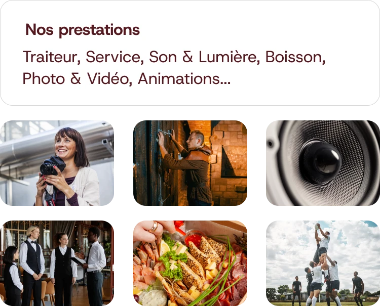 Lors de la validation, vous pourrez ajouter des prestations complémentaires (animations, boissons, traiteur…) ainsi que des tentes et structures disponibles sur devis.