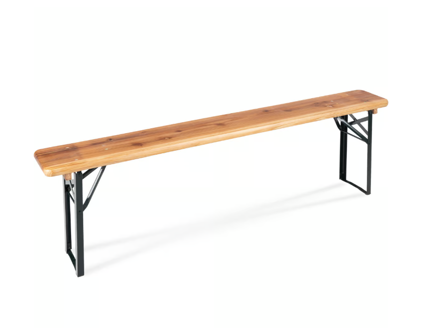 Le banc brasserie se plie et se déplie en quelques secondes. Ce système est très utile pour les événements qui nécessitent une installation rapide ou une rotation régulière du matériel. En outre, son format pliant vous permet de le transporter facilement et de le stocker sans encombrement une fois l’événement terminé.