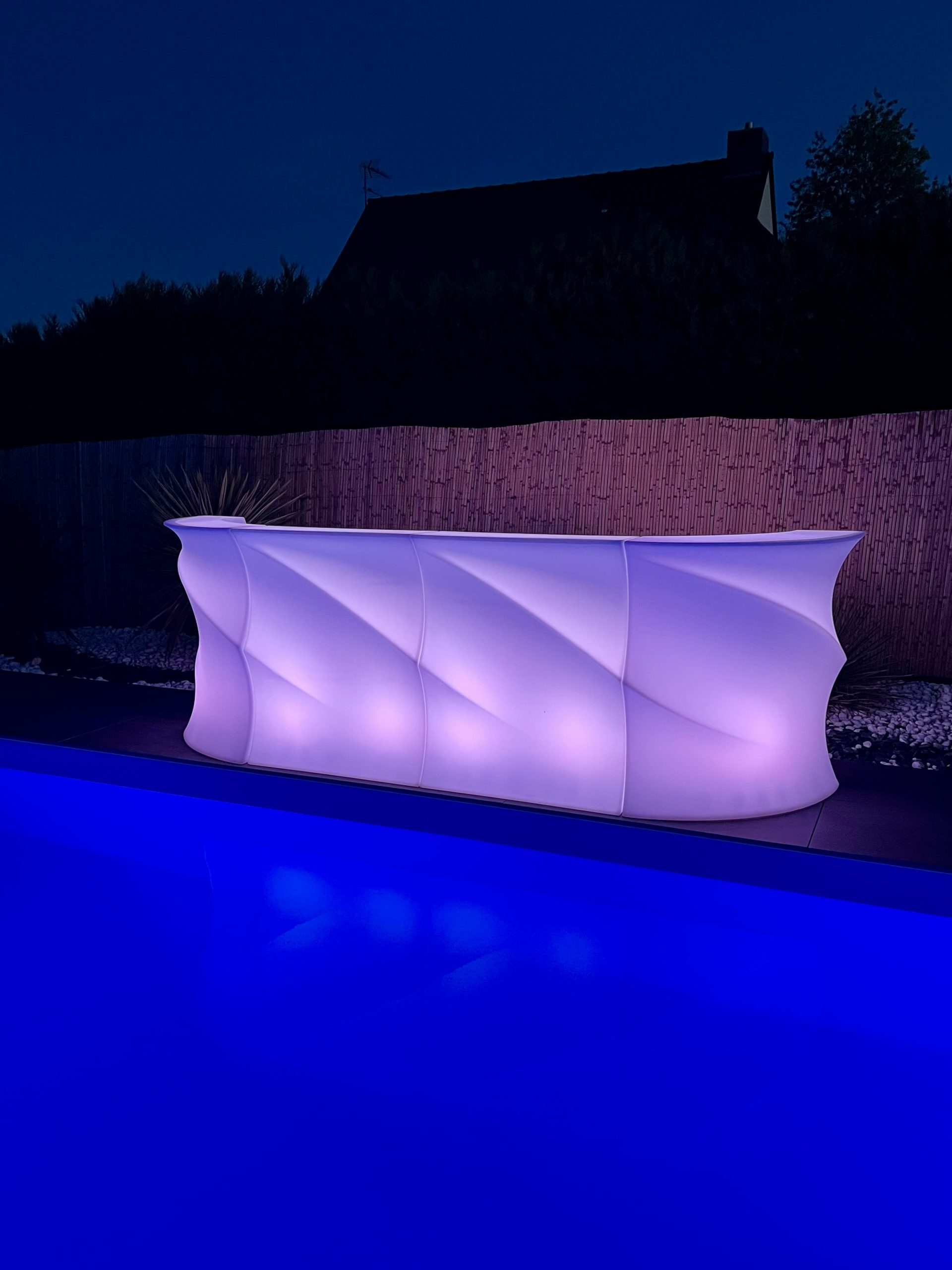 Le pack bar lumineux événementiel Prestige est la solution premium pour la création d’un bar lumineux spacieux, élégant et fortement structurant lors de vos événements. Composé de deux modules centraux et deux modules d’angle, ce pack permet de concevoir un bar lumineux de grande dimension, idéal pour accueillir un flux important d’invités tout en valorisant l’espace de réception.