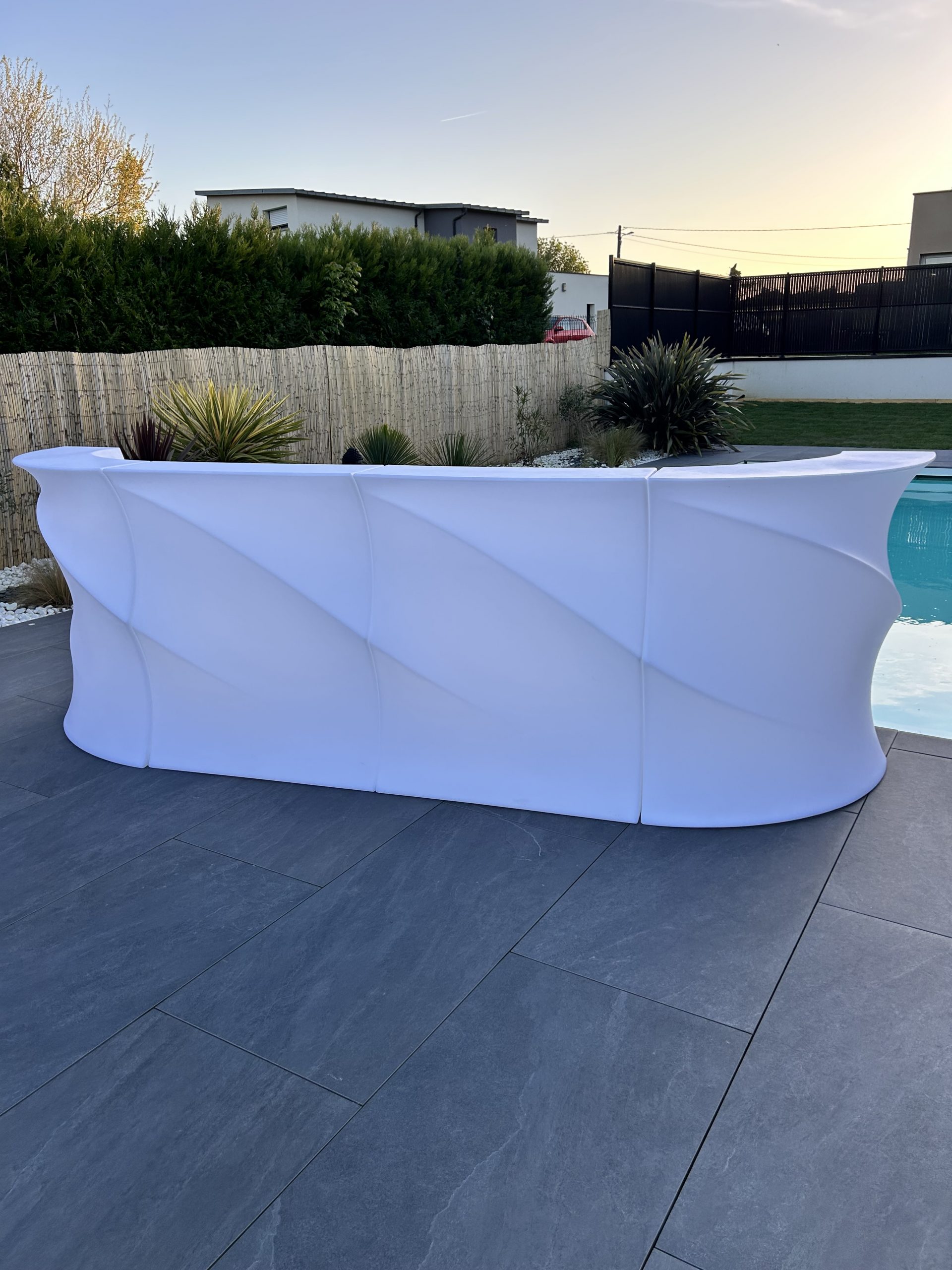 Grâce à la combinaison de modules droits et arrondis, le pack bar lumineux événementiel Prestige permet de créer :