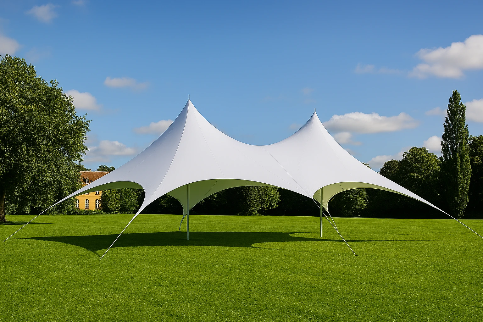 Offrez un espace majestueux et ouvert avec notre tente étoile blanche très grand format.